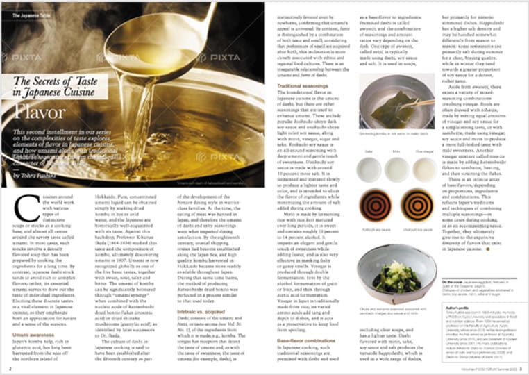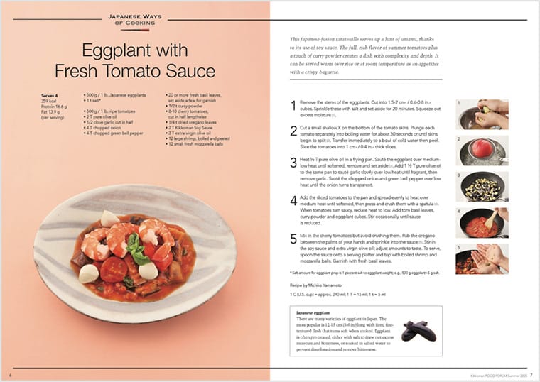 COSMO has been supporting Kikkoman with editorial services for its English quarterly newsletter food forum since 1997—more than 25 years. The publication introduces Japanese food culture to readers around the world from a variety of perspectives. Its articles explore a wide range of themes, including the history of Japanese cuisine, dietary habits, emerging trends, cooking techniques, and kitchen tools. food forum presents traditional Japanese cuisine in connection with the philosophy and cultural context that shape it. Each year, the newsletter focuses on a specific theme related to Japanese food, publishing four in-depth feature articles as a series. Every issue also includes new recipes using Kikkoman Soy Sauce, accompanied by photography introducing original recipes.